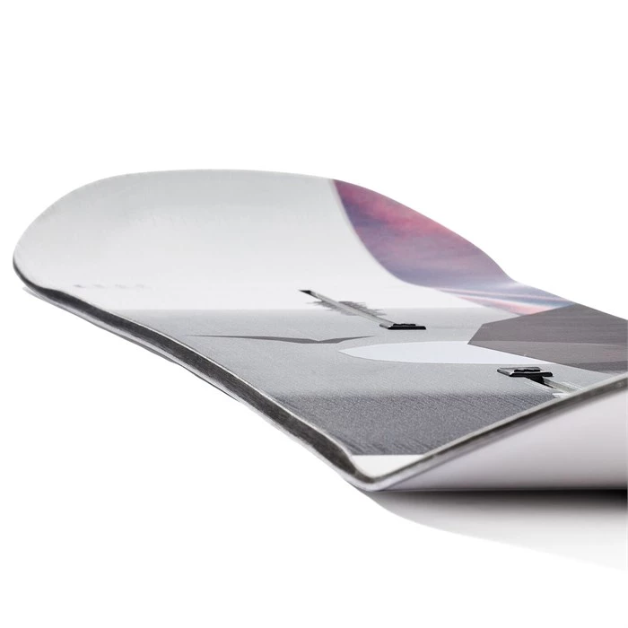 A flat profile between the feet means stability, better balance, and continuous edge control. The tip and tail kick up with an early rise outside the feet for the catch-free and loose feeling you’d expect from a rocker profile.